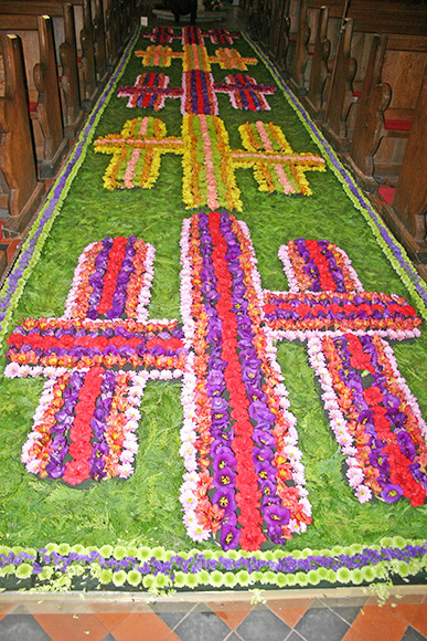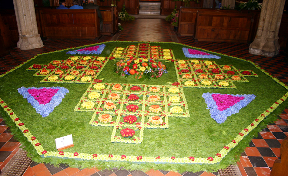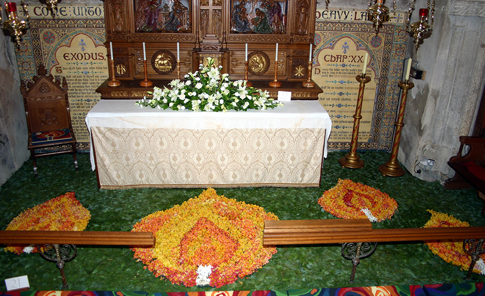 A round floral carpet in the centre of the church as the focal point is entitled “The Circle of Life”.