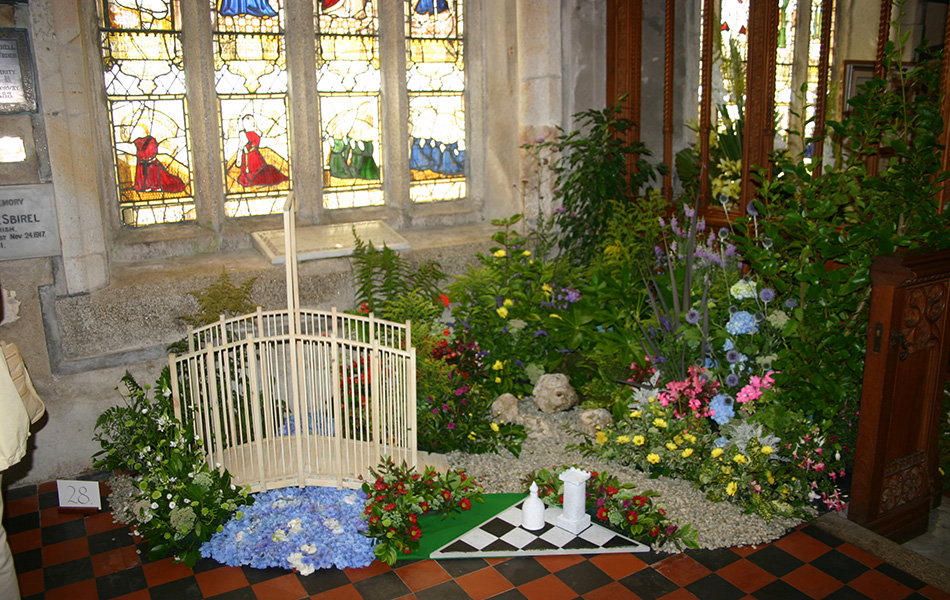 Alongside the more traditional floral displays found inside the Church based around the theme “The Rhythm of Life”, the village of St. Neot offers a wealth of unusual places in which creativity can blossom.